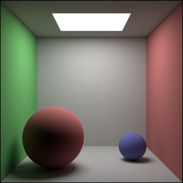 Previously I created a ray tracing program that can render colored shapes with a checkerboard texture. It’s finally time to actually do computer graphics and add path tracing to my application. The rendering equation In its most glorious form the rendering equation looks like this: $L_o(\bold{x}, \omega_o, \lambda, t) = L_e(\bold{x}, \omega_o, \lambda, t) + L_r(\bold{x}, \omega_o, \lambda, t)$ $L_r(\bold{x}, \omega_o, \lambda, t) = \int_\Omega{f_r(x,\omega_i,\omega_o,\lambda,t)L_i(\bold{x}, \omega_i, \lambda, t)(\omega_i\cdot \bold{n})}d\omega_i$ Where ...