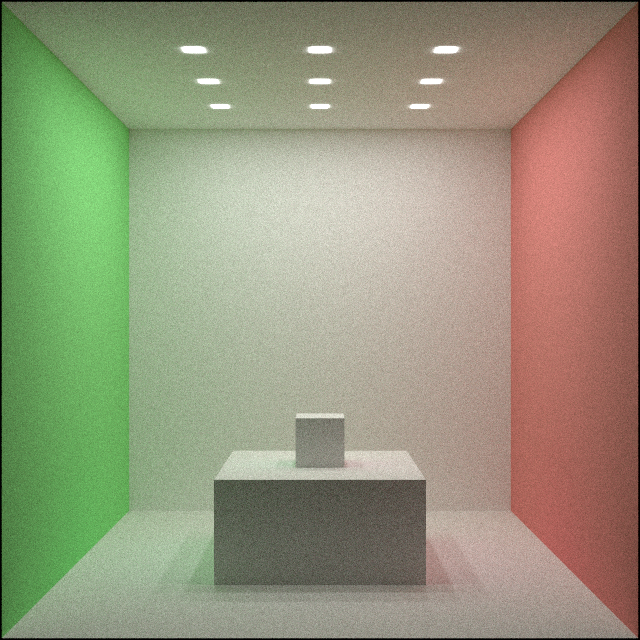 Backwards path tracing via sampling the BSDF of the last vertex results in high noise when the light source is small, or hard to find by chance. In this post I look into using Next Event Estimation, which tries to complete all subpaths directly to a point on a light source. Theory My approach so far has been to create light paths by sampling the BSDF of the material at the last vertex to get a new direction, then intersect it with the scene geometry to get the next vertex. Whenever the last ray hits an emissive surface, that emission is added to the source pixel, weighted with the transmission along the path. An illustration of this can be seen here: ...
